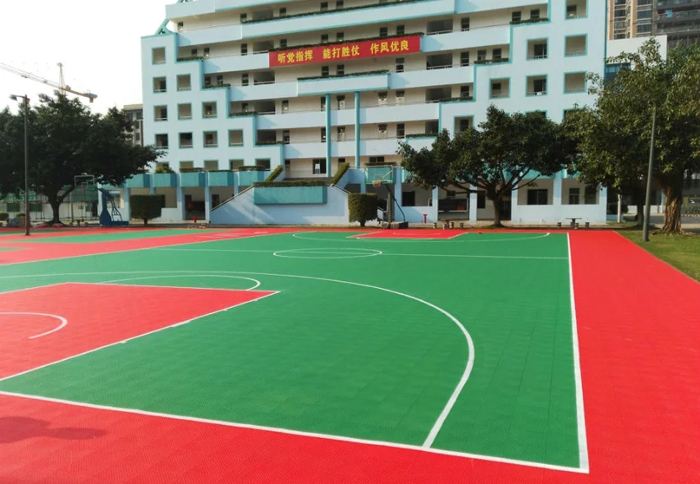 現(xiàn)在越來越多的籃球場(chǎng)都在使用懸浮拼裝運(yùn)動(dòng)地板,懸浮拼裝運(yùn)動(dòng)地板使用環(huán)保材料生產(chǎn)而成,環(huán)保健康。懸浮拼裝運(yùn)動(dòng)地板顏色多樣,可以設(shè)計(jì)出不同顏色的球場(chǎng),給予球員不一樣的運(yùn)動(dòng)感受。懸浮拼裝運(yùn)動(dòng)地板場(chǎng)地效果好,不浮夸耀眼,不吸光不反光不刺眼,能帶給運(yùn)動(dòng)員更舒適的視覺感。同時(shí),對(duì)于籃球這類運(yùn)動(dòng)場(chǎng)地,其不同的顏色搭配能形成更鮮明和諧的對(duì)比,懸浮拼裝運(yùn)動(dòng)地板適合用于室外籃球場(chǎng)。